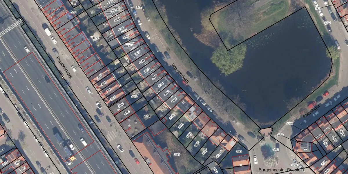 Wouwerlaan 8-A is gelegen op kadastraal perceel OVS00B3582. Deze kadastrale aanduiding is uniek en wordt gebruikt door het Kadaster om eigendomsrechten en andere zakelijke rechten vast te leggen. Het perceel maakt onderdeel uit van de kadastrale gemeente Overschie.