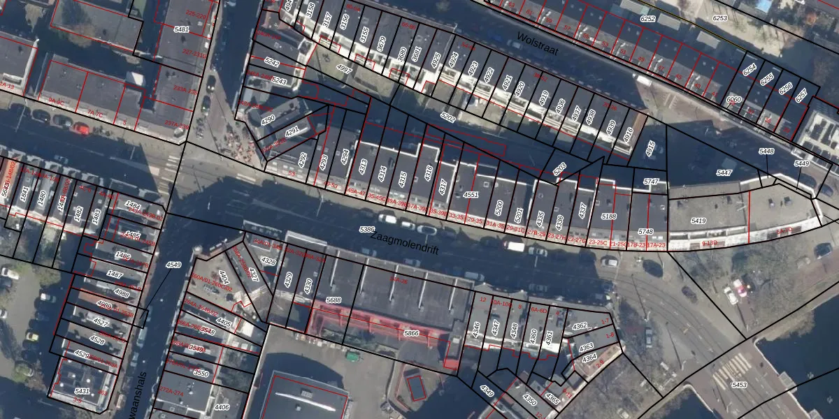 Zaagmolendrift 37-A is gelegen op kadastraal perceel RTD07W4316. Deze kadastrale aanduiding is uniek en wordt gebruikt door het Kadaster om eigendomsrechten en andere zakelijke rechten vast te leggen. Het perceel maakt onderdeel uit van de kadastrale gemeente Rotterdam.