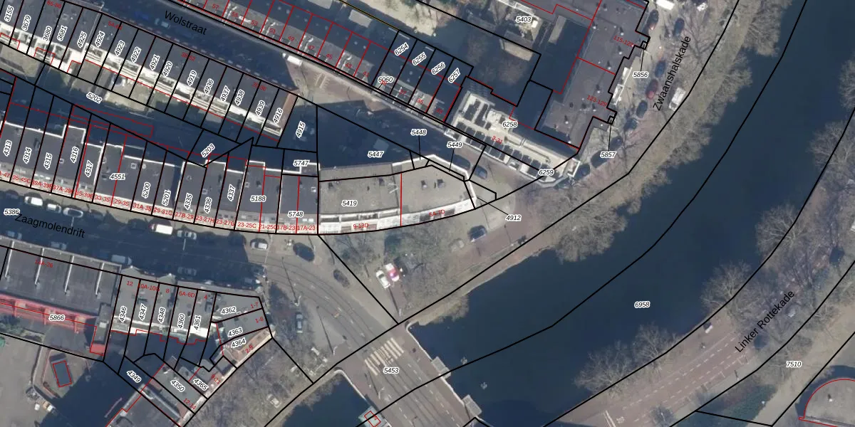 Zaagmolendrift 5-A is gelegen op kadastraal perceel RTD07W5419. Deze kadastrale aanduiding is uniek en wordt gebruikt door het Kadaster om eigendomsrechten en andere zakelijke rechten vast te leggen. Het perceel maakt onderdeel uit van de kadastrale gemeente Rotterdam.