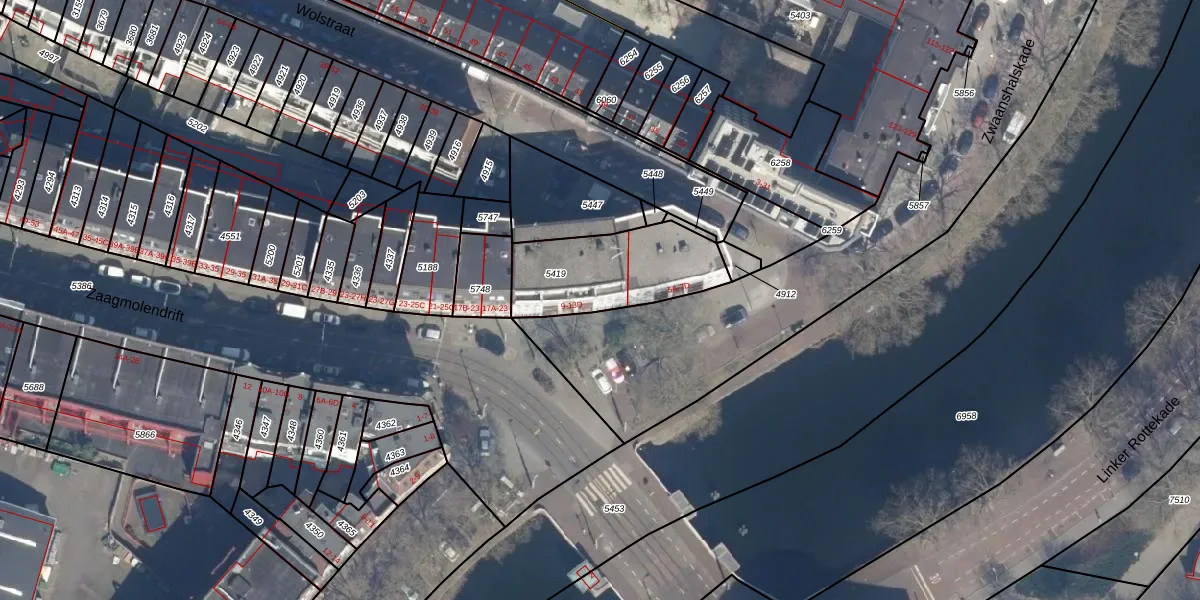 Zaagmolendrift 9 is gelegen op kadastraal perceel RTD07W5419. Deze kadastrale aanduiding is uniek en wordt gebruikt door het Kadaster om eigendomsrechten en andere zakelijke rechten vast te leggen. Het perceel maakt onderdeel uit van de kadastrale gemeente Rotterdam.