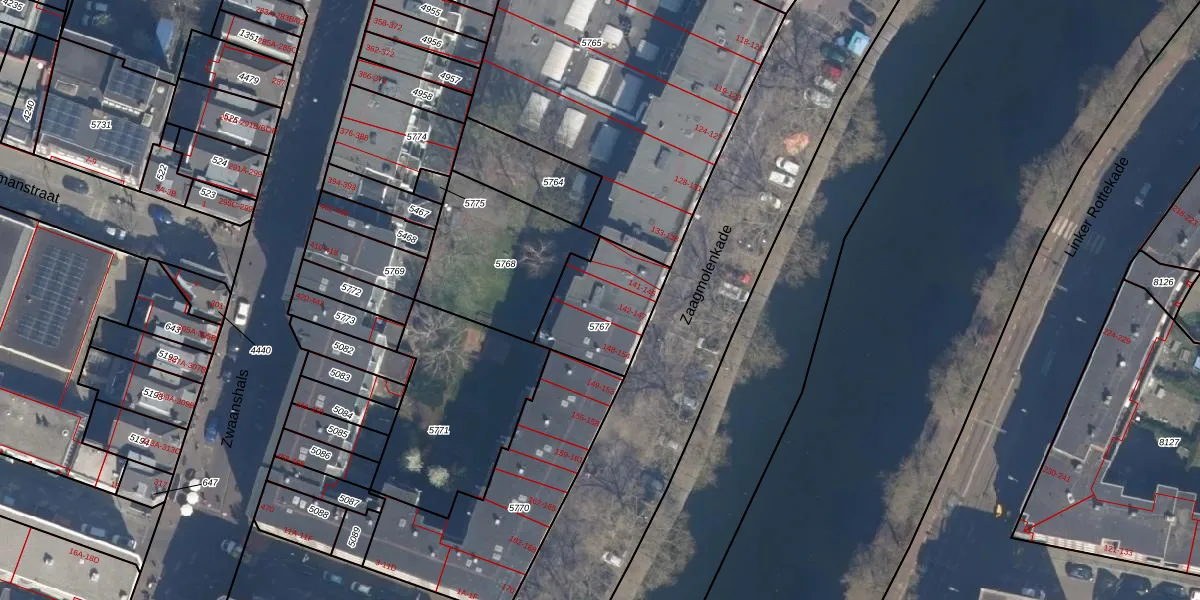 Zaagmolenkade 147 is gelegen op kadastraal perceel RTD07W5767. Deze kadastrale aanduiding is uniek en wordt gebruikt door het Kadaster om eigendomsrechten en andere zakelijke rechten vast te leggen. Het perceel maakt onderdeel uit van de kadastrale gemeente Rotterdam.