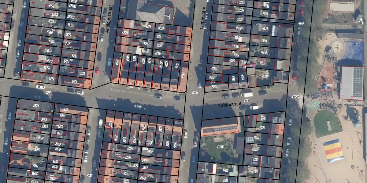 Het perceel waarop Zebrastraat 35 staat heeft een oppervlakte van 83 m². Dit is een klein perceel. De perceeloppervlakte wordt geregistreerd door het Kadaster. Gedetailleerde informatie over de maten van dit perceel kunt u vinden in het rapport Kadastrale kaart met maatvoering van Zebrastraat 35.