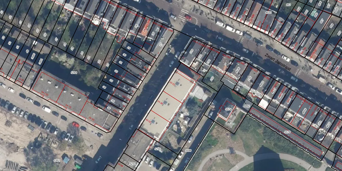 Het perceel waarop het adres ligt is RTD08-X-5161. De afkorting 'RTD08' staat voor kadastrale gemeente Rotterdam. De gemiddelde perceeloppervlakte in de kadastrale gemeente Rotterdam is 689,2 m². Dit perceel is met zijn 1240 m² dus groter dan gemiddeld. Het kleinste perceel in de kadastrale gemeente is 0 m² groot. De grootste perceeloppervlakte is 4,0 ha. Op het perceel zijn 22 adressen aanwezig. De huidige grenzen van het perceel zijn digitaal in de Basisregistratie Kadaster (BRK) geregistreerd op 01-09-2021.