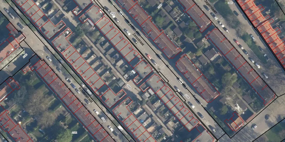 Het perceel waarop Zeisstraat 43 staat heeft een oppervlakte van 8080 m². Dit is een zeer groot perceel. De perceeloppervlakte wordt geregistreerd door het Kadaster. Gedetailleerde informatie over de maten van dit perceel kunt u vinden in het rapport Kadastrale kaart met maatvoering van Zeisstraat 43.