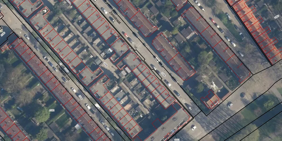 Zeisstraat 55 is gelegen op kadastraal perceel CLS00F3308. Deze kadastrale aanduiding is uniek en wordt gebruikt door het Kadaster om eigendomsrechten en andere zakelijke rechten vast te leggen. Het perceel maakt onderdeel uit van de kadastrale gemeente Charlois.