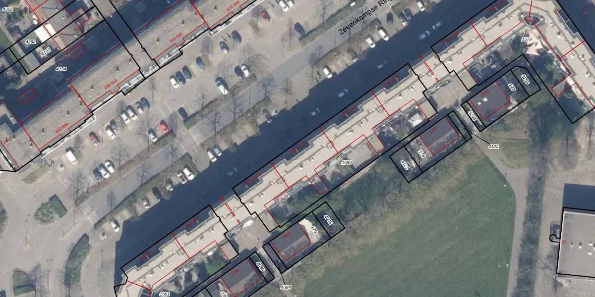Zevenkampse Ring 1025 is gelegen op kadastraal perceel RTD13BA1580. Deze kadastrale aanduiding is uniek en wordt gebruikt door het Kadaster om eigendomsrechten en andere zakelijke rechten vast te leggen. Het perceel maakt onderdeel uit van de kadastrale gemeente Rotterdam.
