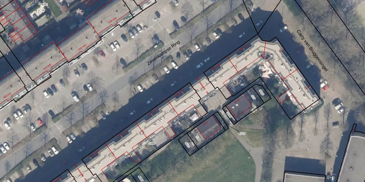 Zevenkampse Ring 1073 is gelegen op kadastraal perceel RTD13BA1580. Deze kadastrale aanduiding is uniek en wordt gebruikt door het Kadaster om eigendomsrechten en andere zakelijke rechten vast te leggen. Het perceel maakt onderdeel uit van de kadastrale gemeente Rotterdam.