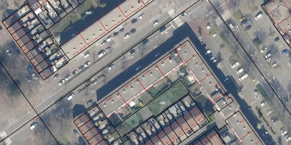 Zevenkampse Ring 262 is gelegen op kadastraal perceel RTD13BA4020. Deze kadastrale aanduiding is uniek en wordt gebruikt door het Kadaster om eigendomsrechten en andere zakelijke rechten vast te leggen. Het perceel maakt onderdeel uit van de kadastrale gemeente Rotterdam.