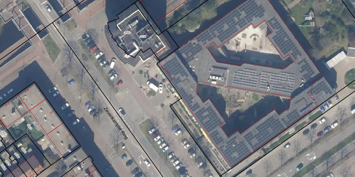 Het perceel waarop Zevenkampse Ring 40-K46 staat heeft een oppervlakte van 9170 m². Dit is een zeer groot perceel. De perceeloppervlakte wordt geregistreerd door het Kadaster. Gedetailleerde informatie over de maten van dit perceel kunt u vinden in het rapport Kadastrale kaart met maatvoering van Zevenkampse Ring 40-K46.