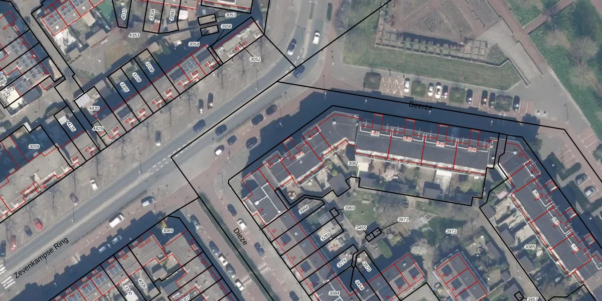Het perceel waarop Zevenkampse Ring 416 staat heeft een oppervlakte van 2043 m². Dit is een zeer groot perceel. De perceeloppervlakte wordt geregistreerd door het Kadaster. Gedetailleerde informatie over de maten van dit perceel kunt u vinden in het rapport Kadastrale kaart met maatvoering van Zevenkampse Ring 416.