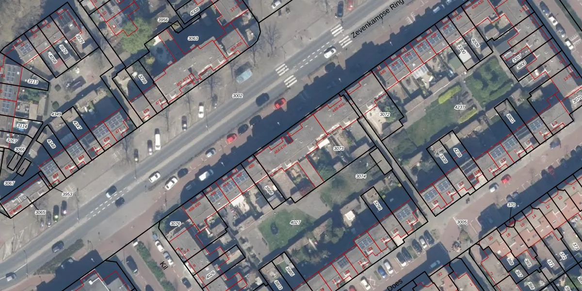 Zevenkampse Ring 474 is gelegen op kadastraal perceel RTD13BA3073. Deze kadastrale aanduiding is uniek en wordt gebruikt door het Kadaster om eigendomsrechten en andere zakelijke rechten vast te leggen. Het perceel maakt onderdeel uit van de kadastrale gemeente Rotterdam.