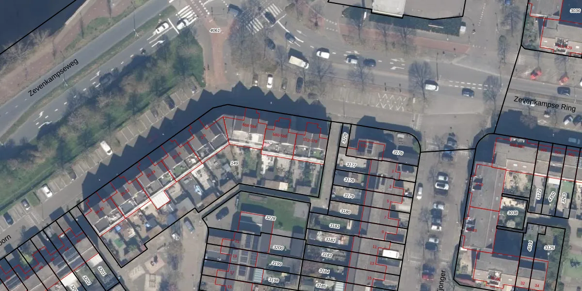 Zevenkampse Ring 580 is gelegen op kadastraal perceel RTD13BA149. Deze kadastrale aanduiding is uniek en wordt gebruikt door het Kadaster om eigendomsrechten en andere zakelijke rechten vast te leggen. Het perceel maakt onderdeel uit van de kadastrale gemeente Rotterdam.
