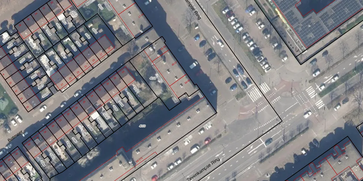 Zevenkampse Ring 59 is gelegen op kadastraal perceel RTD13BA4018. Deze kadastrale aanduiding is uniek en wordt gebruikt door het Kadaster om eigendomsrechten en andere zakelijke rechten vast te leggen. Het perceel maakt onderdeel uit van de kadastrale gemeente Rotterdam.