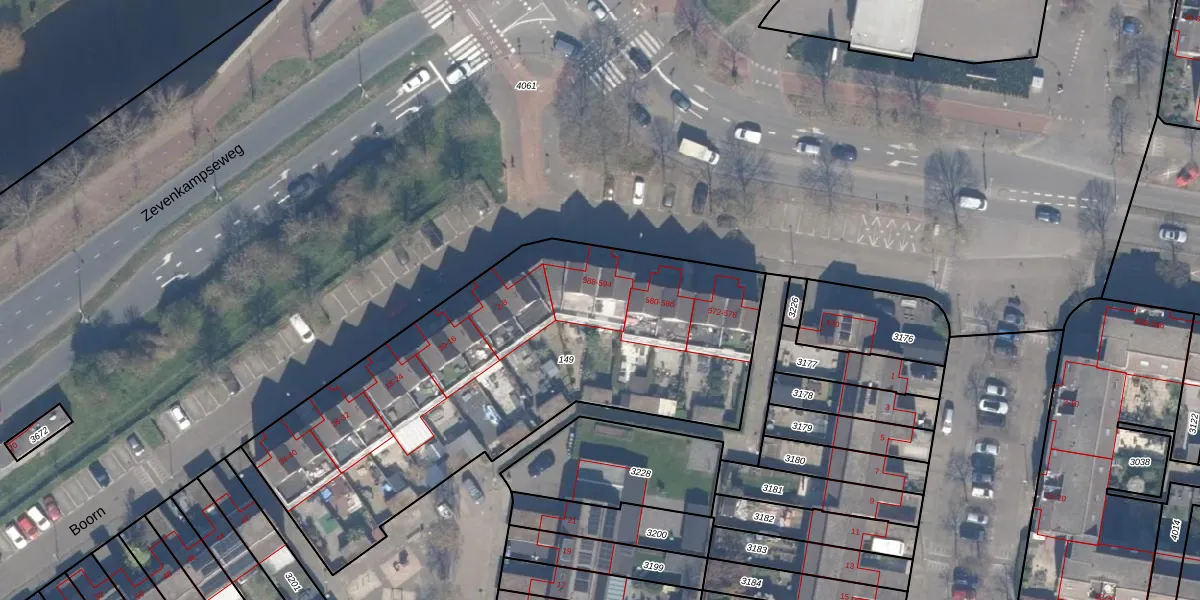 Het perceel waarop Zevenkampse Ring 592 staat heeft een oppervlakte van 2280 m². Dit is een zeer groot perceel. De perceeloppervlakte wordt geregistreerd door het Kadaster. Gedetailleerde informatie over de maten van dit perceel kunt u vinden in het rapport Kadastrale kaart met maatvoering van Zevenkampse Ring 592.