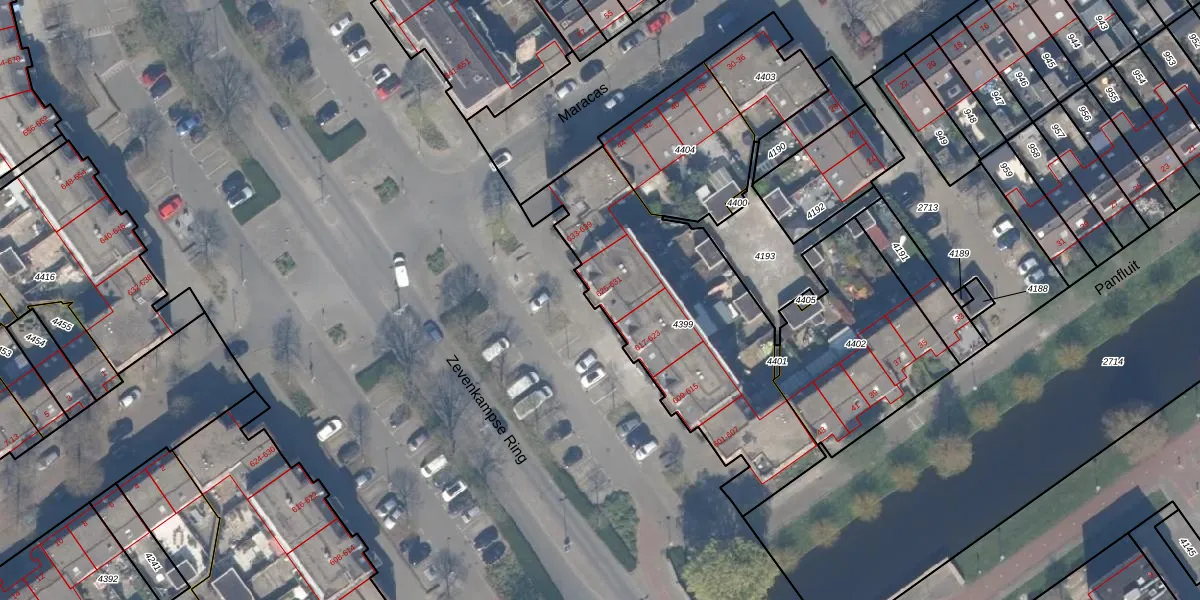Zevenkampse Ring 625 is gelegen op kadastraal perceel RTD13BA4399. Deze kadastrale aanduiding is uniek en wordt gebruikt door het Kadaster om eigendomsrechten en andere zakelijke rechten vast te leggen. Het perceel maakt onderdeel uit van de kadastrale gemeente Rotterdam.