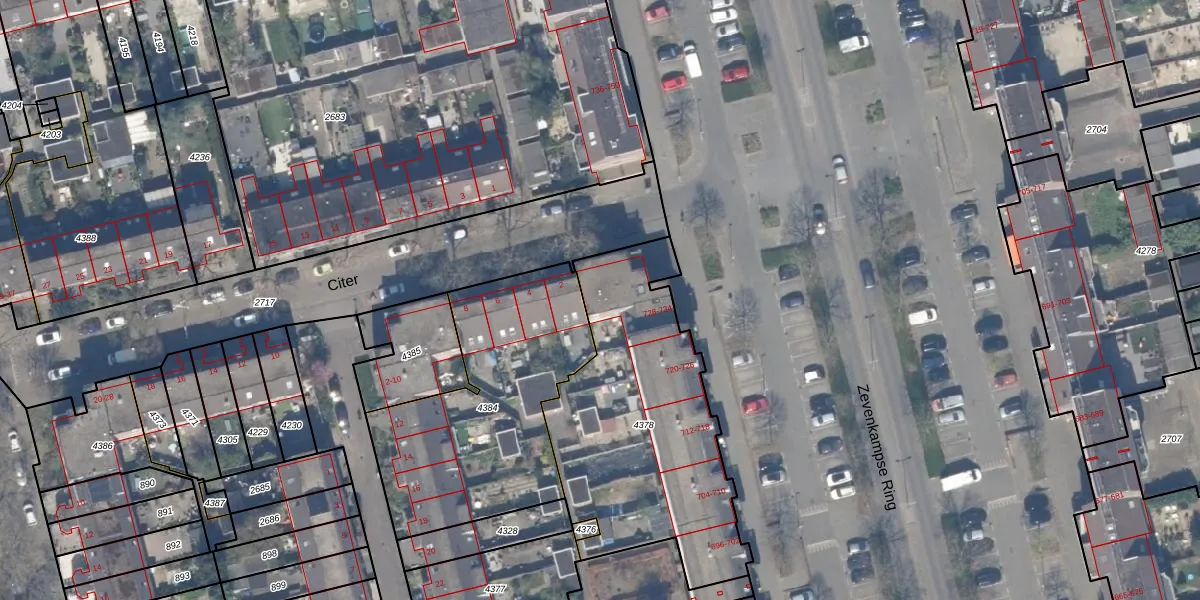 Zevenkampse Ring 734 is gelegen op kadastraal perceel RTD13BA4378. Deze kadastrale aanduiding is uniek en wordt gebruikt door het Kadaster om eigendomsrechten en andere zakelijke rechten vast te leggen. Het perceel maakt onderdeel uit van de kadastrale gemeente Rotterdam.