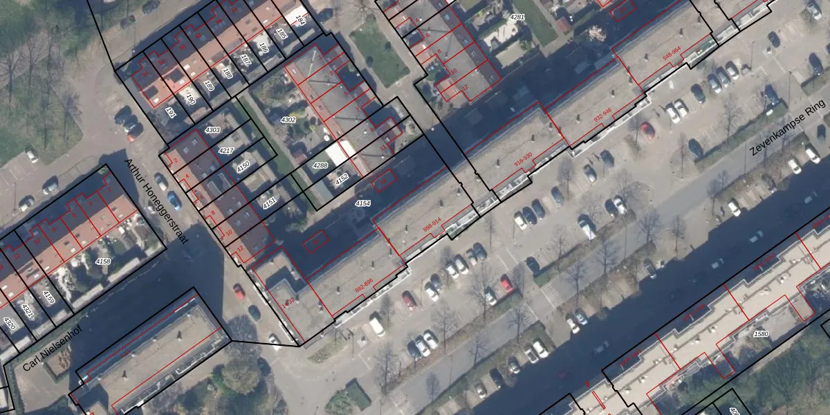 Zevenkampse Ring 908 is gelegen op kadastraal perceel RTD13BA4154. Deze kadastrale aanduiding is uniek en wordt gebruikt door het Kadaster om eigendomsrechten en andere zakelijke rechten vast te leggen. Het perceel maakt onderdeel uit van de kadastrale gemeente Rotterdam.