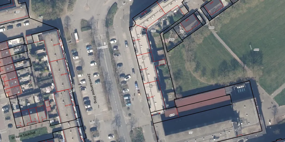 Zevenkampse Ring 933 is gelegen op kadastraal perceel RTD13BA1581. Deze kadastrale aanduiding is uniek en wordt gebruikt door het Kadaster om eigendomsrechten en andere zakelijke rechten vast te leggen. Het perceel maakt onderdeel uit van de kadastrale gemeente Rotterdam.