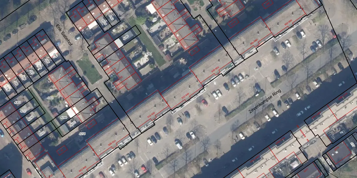 Zevenkampse Ring 938 is gelegen op kadastraal perceel RTD13BA4281. Deze kadastrale aanduiding is uniek en wordt gebruikt door het Kadaster om eigendomsrechten en andere zakelijke rechten vast te leggen. Het perceel maakt onderdeel uit van de kadastrale gemeente Rotterdam.