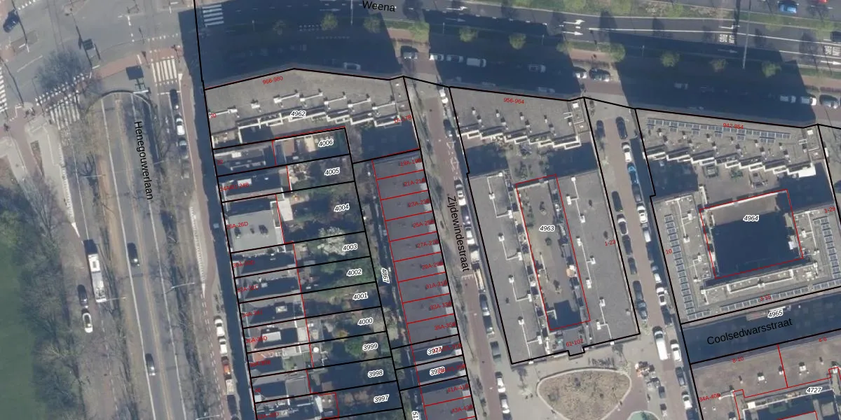 Het adres is gelegen op perceel 4867 in de sectie S en de kadastrale gemeente Rotterdam. De kadastrale aanduiding is aldus RTD06-S-4867. De oppervlakte van het perceel is 742 m². Dat is groter dan gemiddeld in Rotterdam, waar de gemiddelde perceeloppervlakte op 692,84 m² ligt. Het kleinste perceel in de kadastrale gemeente is 0 m² groot. De grootste perceeloppervlakte is 4,7 ha. Op het perceel zijn 18 adressen aanwezig. De huidige grenzen van het perceel zijn digitaal in de Basisregistratie Kadaster (BRK) geregistreerd op 20-11-2019.