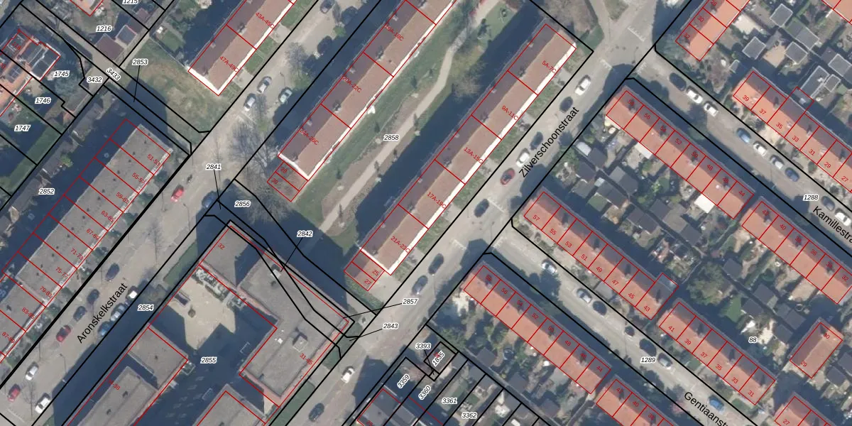 Het perceel waarop Zilverschoonstraat 19-A staat heeft een oppervlakte van 3640 m². Dit is een zeer groot perceel. De perceeloppervlakte wordt geregistreerd door het Kadaster. Gedetailleerde informatie over de maten van dit perceel kunt u vinden in het rapport Kadastrale kaart met maatvoering van Zilverschoonstraat 19-A.
