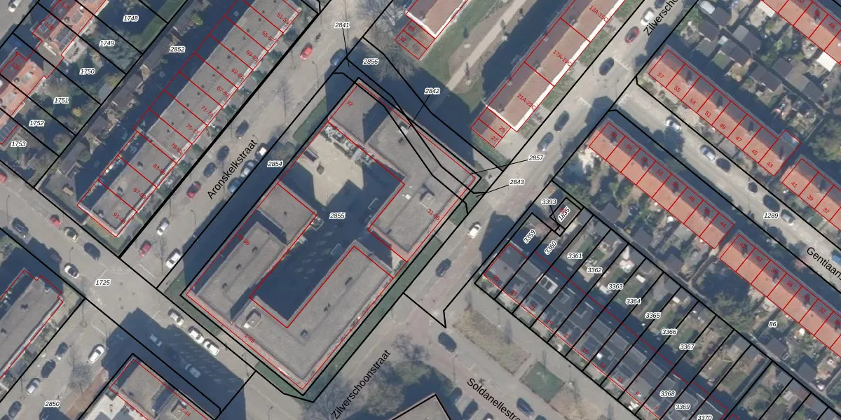 Het perceel waarop Zilverschoonstraat 33 staat heeft een oppervlakte van 2365 m². Dit is een zeer groot perceel. De perceeloppervlakte wordt geregistreerd door het Kadaster. Gedetailleerde informatie over de maten van dit perceel kunt u vinden in het rapport Kadastrale kaart met maatvoering van Zilverschoonstraat 33.