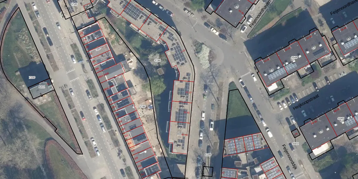 Het adres is gelegen op perceel 5744 in de sectie Q en de kadastrale gemeente Rotterdam. De kadastrale aanduiding is aldus RTD05-Q-5744. De gemiddelde perceeloppervlakte in de kadastrale gemeente Rotterdam is 1402,06 m². Dit perceel is met zijn 2740 m² dus groter dan gemiddeld. De grootste perceeloppervlakte in de kadastrale gemeente is 36,8 ha. De kleinste oppervlakte bedraagt 0 m². Op het perceel zijn 49 adressen aanwezig. De huidige grenzen van het perceel zijn digitaal in de Basisregistratie Kadaster (BRK) geregistreerd op 12-08-2003.