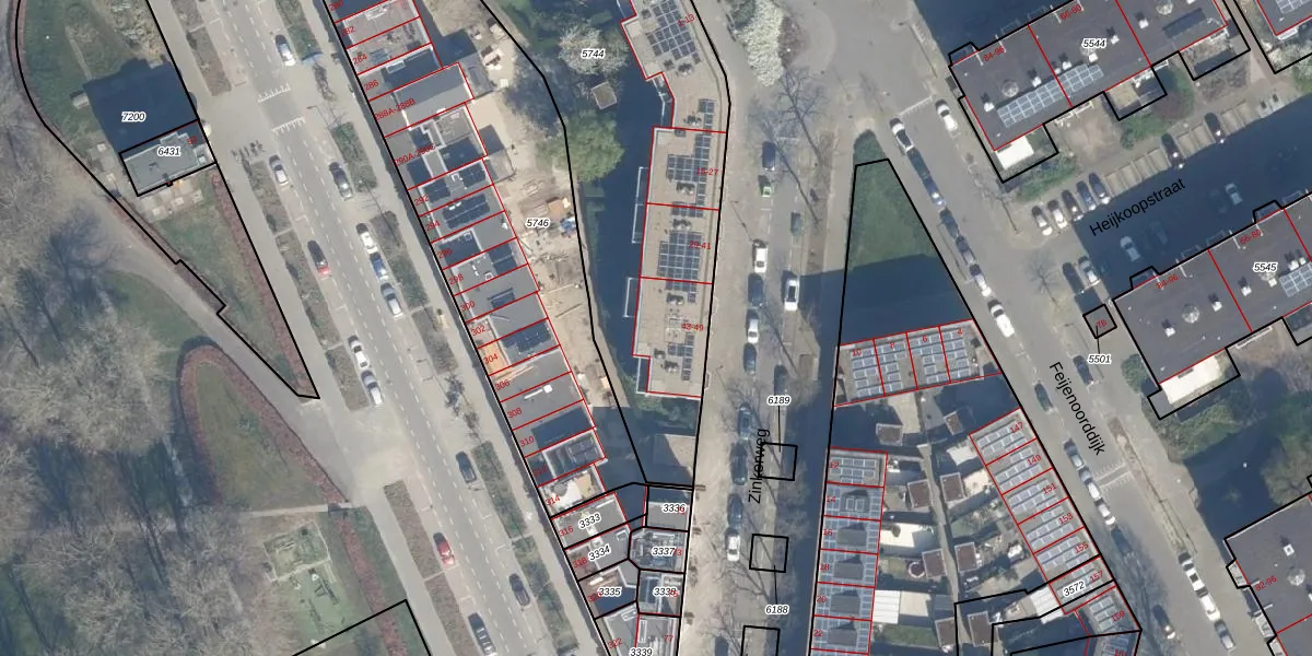 Het adres is gelegen op perceel 5744 in de sectie Q en de kadastrale gemeente Rotterdam. De kadastrale aanduiding is aldus RTD05-Q-5744. De gemiddelde perceeloppervlakte in de kadastrale gemeente Rotterdam is 1401,79 m². Dit perceel is met zijn 2740 m² dus groter dan gemiddeld. De grootste perceeloppervlakte in de kadastrale gemeente is 36,8 ha. De kleinste oppervlakte bedraagt 0 m². Er zijn 49 adressen aanwezig op het perceel. De huidige grenzen van het perceel zijn digitaal in de Basisregistratie Kadaster (BRK) geregistreerd op 12-08-2003.