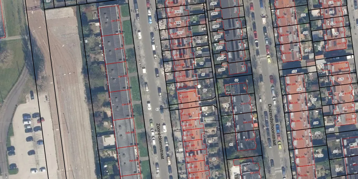 Het perceel waarop Zonnebloemstraat 19-B staat heeft een oppervlakte van 321 m². Dit is een groot perceel. De perceeloppervlakte wordt geregistreerd door het Kadaster. Gedetailleerde informatie over de maten van dit perceel kunt u vinden in het rapport Kadastrale kaart met maatvoering van Zonnebloemstraat 19-B.