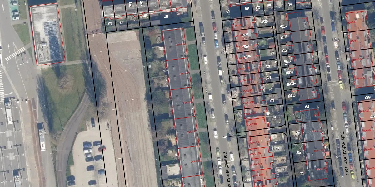 Het perceel waarop Zonnebloemstraat 26-C staat heeft een oppervlakte van 5302 m². Dit is een zeer groot perceel. De perceeloppervlakte wordt geregistreerd door het Kadaster. Gedetailleerde informatie over de maten van dit perceel kunt u vinden in het rapport Kadastrale kaart met maatvoering van Zonnebloemstraat 26-C.