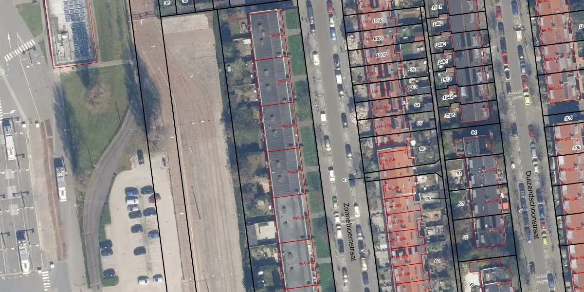 Het perceel waarop Zonnebloemstraat 28-A staat heeft een oppervlakte van 5302 m². Dit is een zeer groot perceel. De perceeloppervlakte wordt geregistreerd door het Kadaster. Gedetailleerde informatie over de maten van dit perceel kunt u vinden in het rapport Kadastrale kaart met maatvoering van Zonnebloemstraat 28-A.