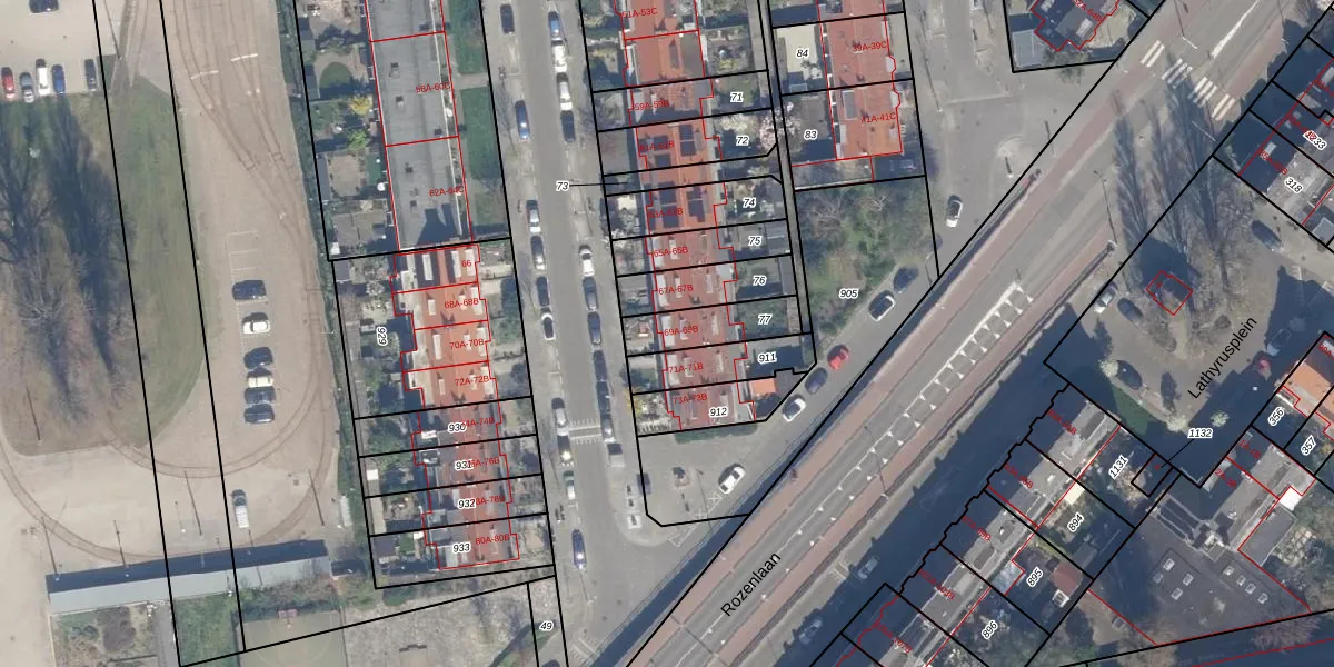 Het adres is gelegen op perceel 77 in de sectie H en de kadastrale gemeente Hillegersberg. De kadastrale aanduiding is aldus HLG03-H-77. Het perceel is kleiner dan gemiddeld in Hillegersberg. Het perceel is 159 m² groot, terwijl het gemiddelde ligt op 875,28 m². Het kleinste perceel in de kadastrale gemeente is 0 m² groot. De grootste perceeloppervlakte is 34,1 ha. Op het perceel liggen in totaal 2 adressen. De laatste wijziging in het de Basisregistratie Kadaster (BRK) was op 19-11-2002.