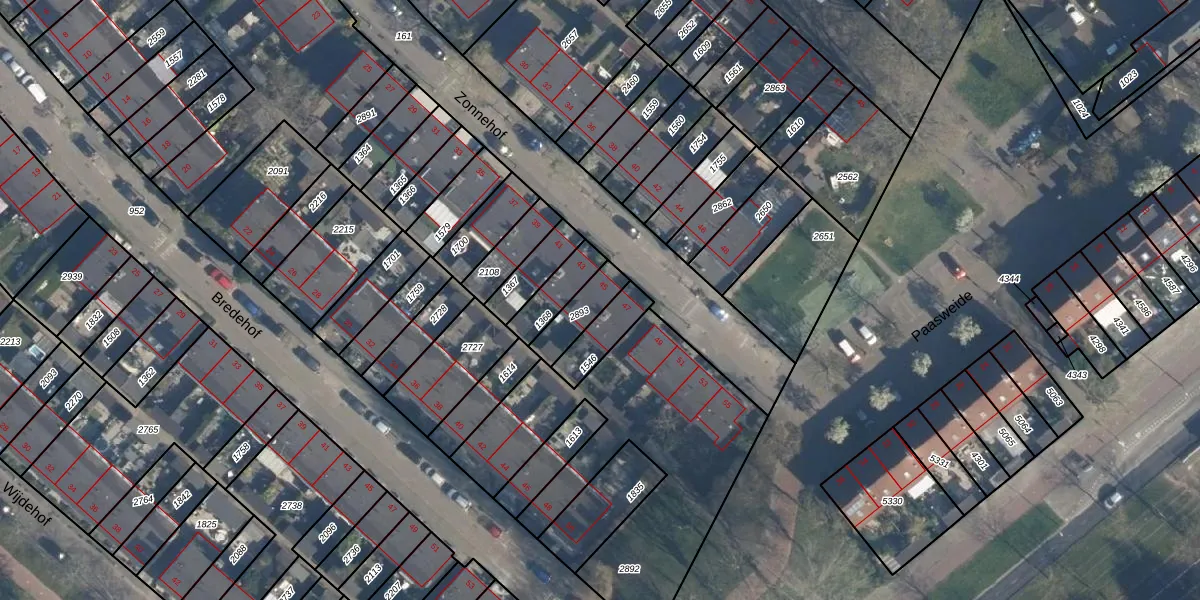 Het perceel waarop Zonnehof 45 staat heeft een oppervlakte van 99 m². Dit is een klein perceel. De perceeloppervlakte wordt geregistreerd door het Kadaster. Gedetailleerde informatie over de maten van dit perceel kunt u vinden in het rapport Kadastrale kaart met maatvoering van Zonnehof 45.