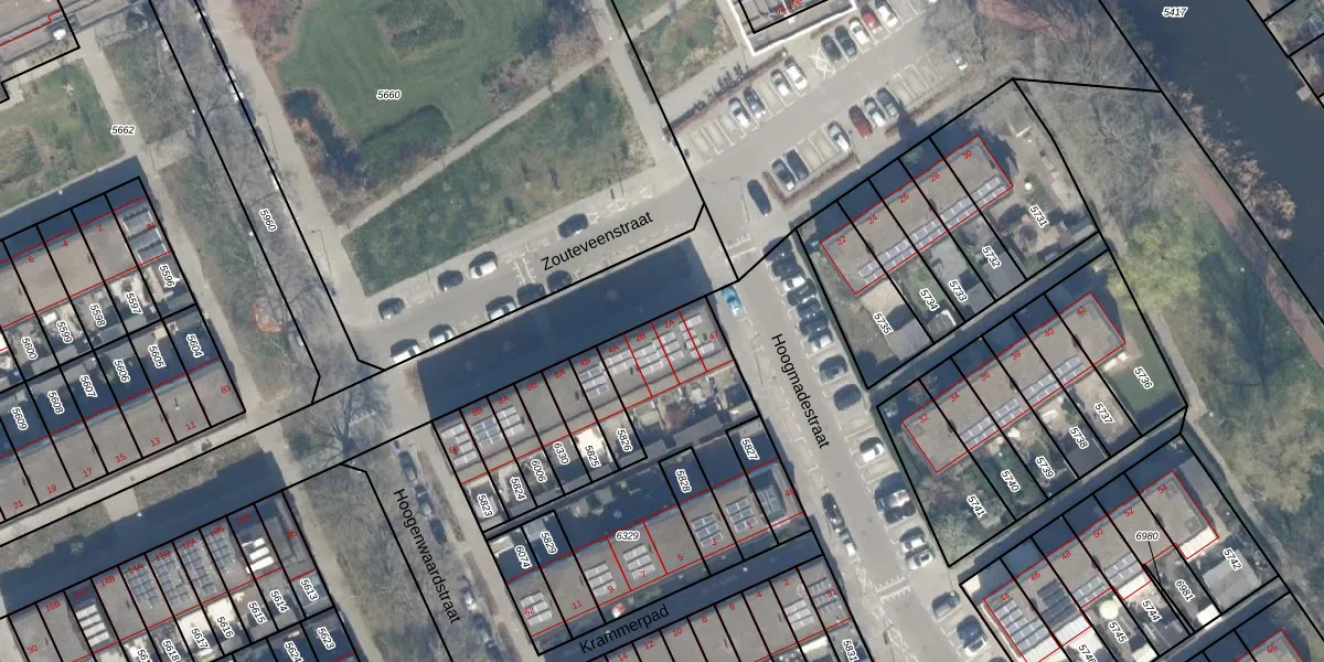 Zouteveenstraat 2-A is gelegen op kadastraal perceel OVS00C6329. Deze kadastrale aanduiding is uniek en wordt gebruikt door het Kadaster om eigendomsrechten en andere zakelijke rechten vast te leggen. Het perceel maakt onderdeel uit van de kadastrale gemeente Overschie.