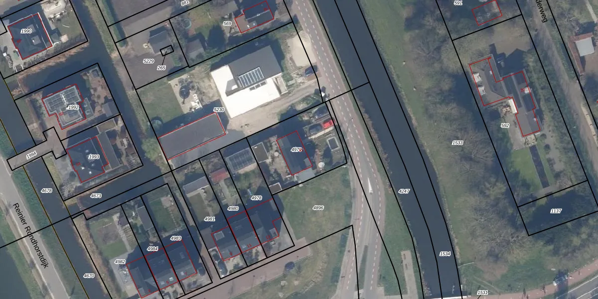 Gebruik de zoekbalk of klik op een perceel voor informatie over de adressen binnen dit perceel.