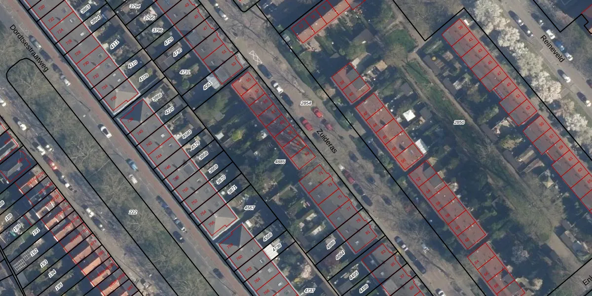 Zuideras 67 is gelegen op kadastraal perceel CLS00F4885. Deze kadastrale aanduiding is uniek en wordt gebruikt door het Kadaster om eigendomsrechten en andere zakelijke rechten vast te leggen. Het perceel maakt onderdeel uit van de kadastrale gemeente Charlois.