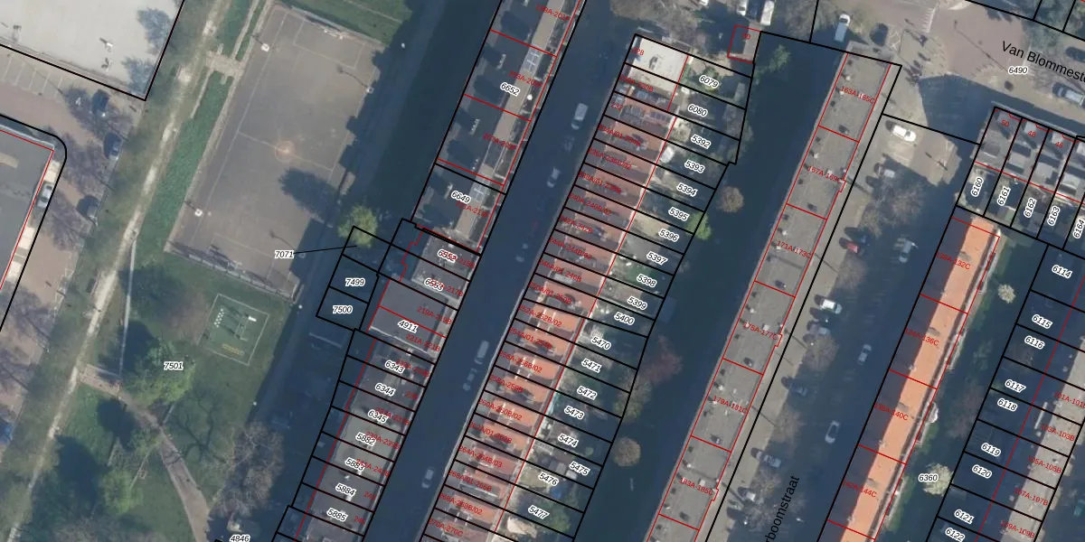 Het adres is gelegen op perceel 5399 in de sectie B en de kadastrale gemeente Charlois. De kadastrale aanduiding is aldus CLS00-B-5399. Het perceel is 106 m² groot. Dat is kleiner dan de gemiddelde perceeloppervlakte in Charlois, dat op 1147,69 m² ligt. De grootste perceeloppervlakte in de kadastrale gemeente is 1,09 km². De kleinste oppervlakte bedraagt 0 m². Er zijn 4 adressen aanwezig op het perceel. De huidige grenzen van het perceel zijn digitaal in de Basisregistratie Kadaster (BRK) geregistreerd op 06-03-2009.