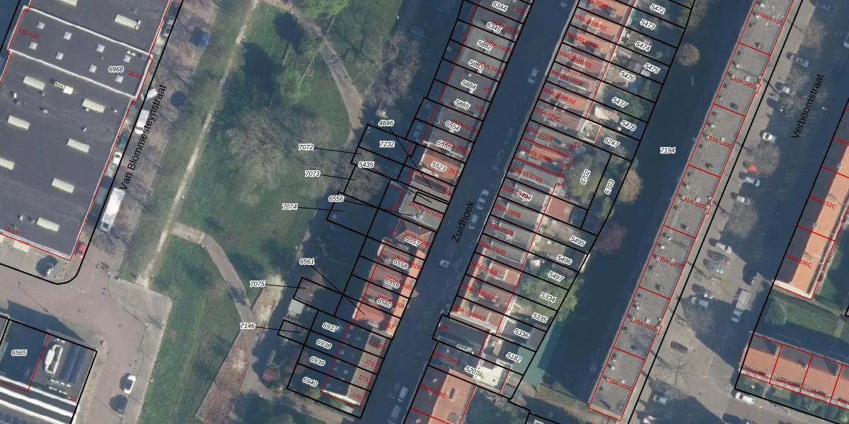 Zuidhoek 257-B is gelegen op kadastraal perceel CLS00B6556. Deze kadastrale aanduiding is uniek en wordt gebruikt door het Kadaster om eigendomsrechten en andere zakelijke rechten vast te leggen. Het perceel maakt onderdeel uit van de kadastrale gemeente Charlois.
