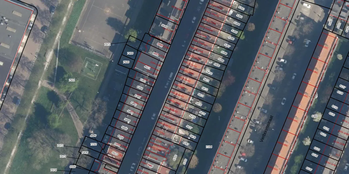 Het adres is gelegen op perceel 5473 in de sectie B en de kadastrale gemeente Charlois. De kadastrale aanduiding is aldus CLS00-B-5473. Het perceel is 122 m² groot. Dat is kleiner dan de gemiddelde perceeloppervlakte in Charlois, dat op 1147,17 m² ligt. De grootste perceeloppervlakte in de kadastrale gemeente is 1,09 km². De kleinste oppervlakte bedraagt 0 m². Er zijn 4 adressen aanwezig op het perceel. In de Basisregistratie Kadaster (BRK) werden de grenzen van het perceel geregistreerd op 06-03-2009.