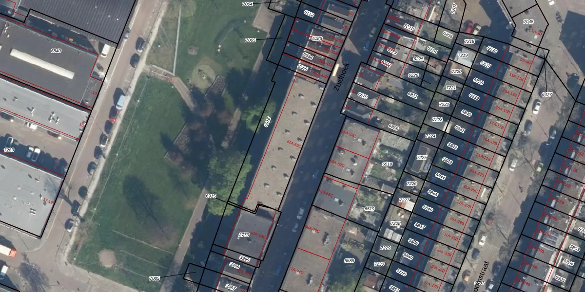 Zuidhoek 53-C is gelegen op kadastraal perceel CLS00B6916. Deze kadastrale aanduiding is uniek en wordt gebruikt door het Kadaster om eigendomsrechten en andere zakelijke rechten vast te leggen. Het perceel maakt onderdeel uit van de kadastrale gemeente Charlois.