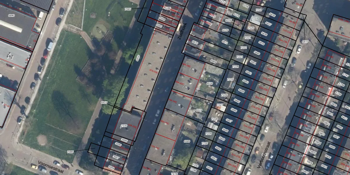 Zuidhoek 62-B is gelegen op kadastraal perceel CLS00B6518. Deze kadastrale aanduiding is uniek en wordt gebruikt door het Kadaster om eigendomsrechten en andere zakelijke rechten vast te leggen. Het perceel maakt onderdeel uit van de kadastrale gemeente Charlois.
