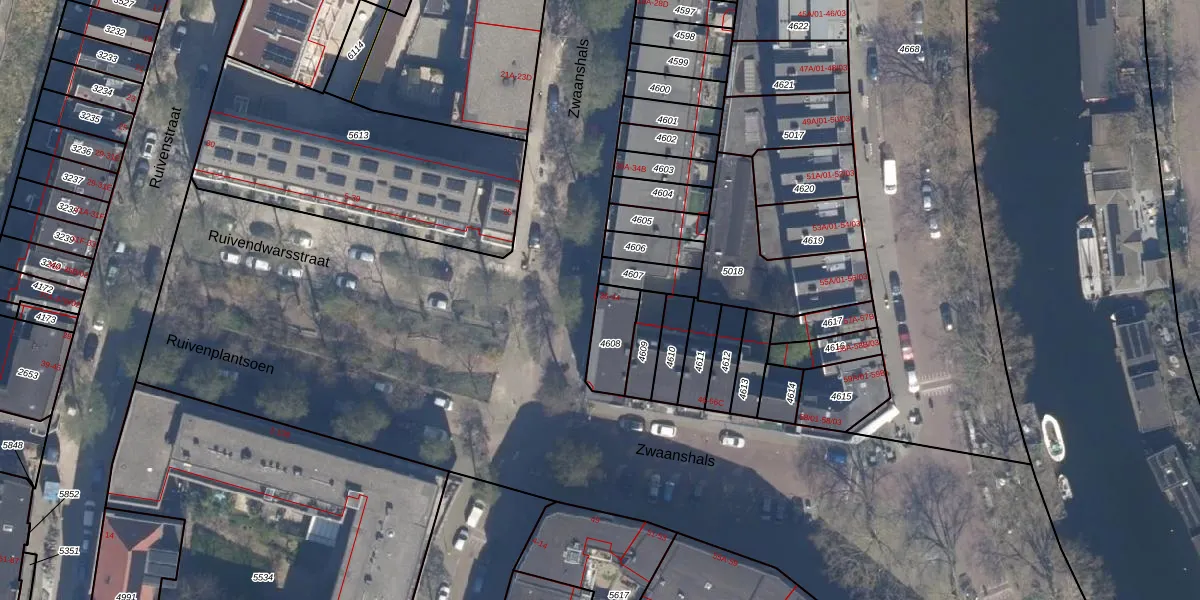 Zwaanshals 42-A is gelegen op kadastraal perceel RTD09Y4608. Deze kadastrale aanduiding is uniek en wordt gebruikt door het Kadaster om eigendomsrechten en andere zakelijke rechten vast te leggen. Het perceel maakt onderdeel uit van de kadastrale gemeente Rotterdam.