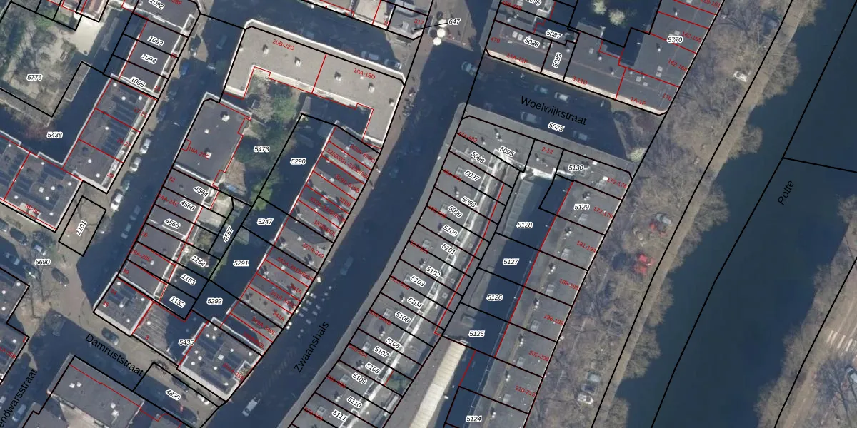 Het adres is gelegen op perceel 5100 in de sectie W en de kadastrale gemeente Rotterdam. De kadastrale aanduiding is aldus RTD07-W-5100. Het perceel is kleiner dan gemiddeld in Rotterdam. Het perceel is 80 m² groot, terwijl het gemiddelde ligt op 506,86 m². Het kleinste perceel in de kadastrale gemeente is 0 m² groot. De grootste perceeloppervlakte is 10,8 ha. Er zijn 7 adressen aanwezig op het perceel. De laatste wijziging in het de Basisregistratie Kadaster (BRK) was op 29-07-2004.