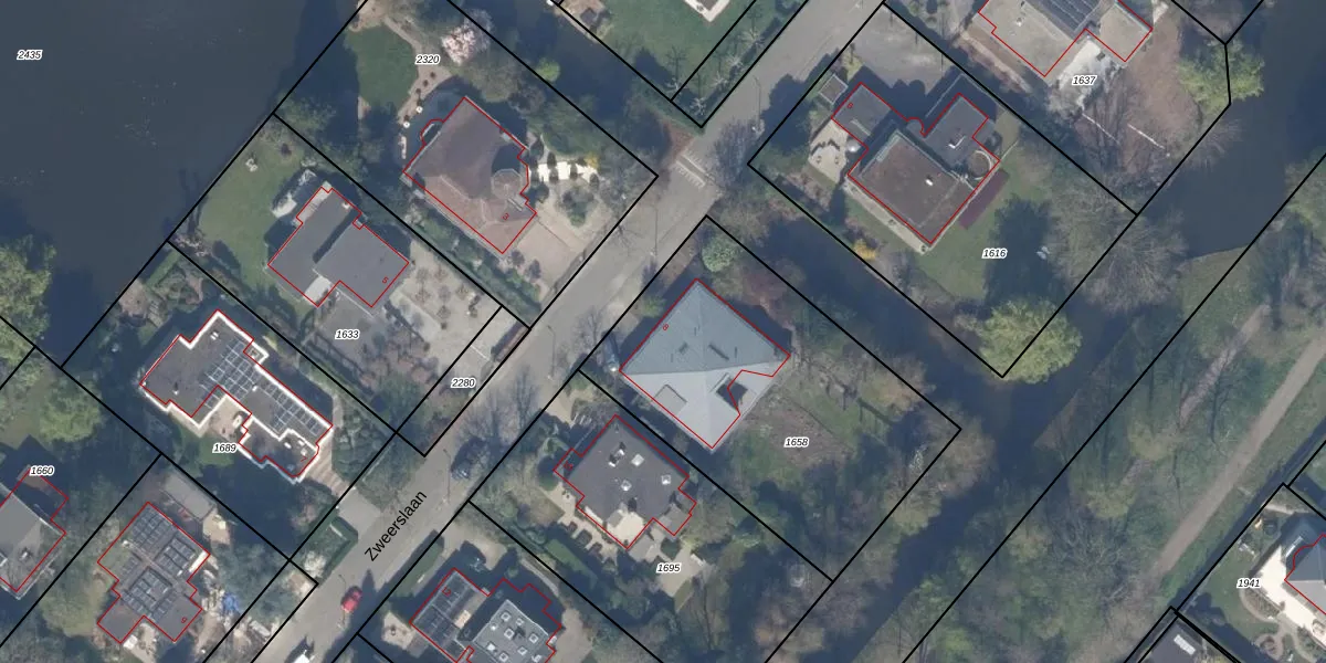 Het perceel waarop Zweerslaan 8 staat heeft een oppervlakte van 1500 m². Dit is een zeer groot perceel. De perceeloppervlakte wordt geregistreerd door het Kadaster. Gedetailleerde informatie over de maten van dit perceel kunt u vinden in het rapport Kadastrale kaart met maatvoering van Zweerslaan 8.