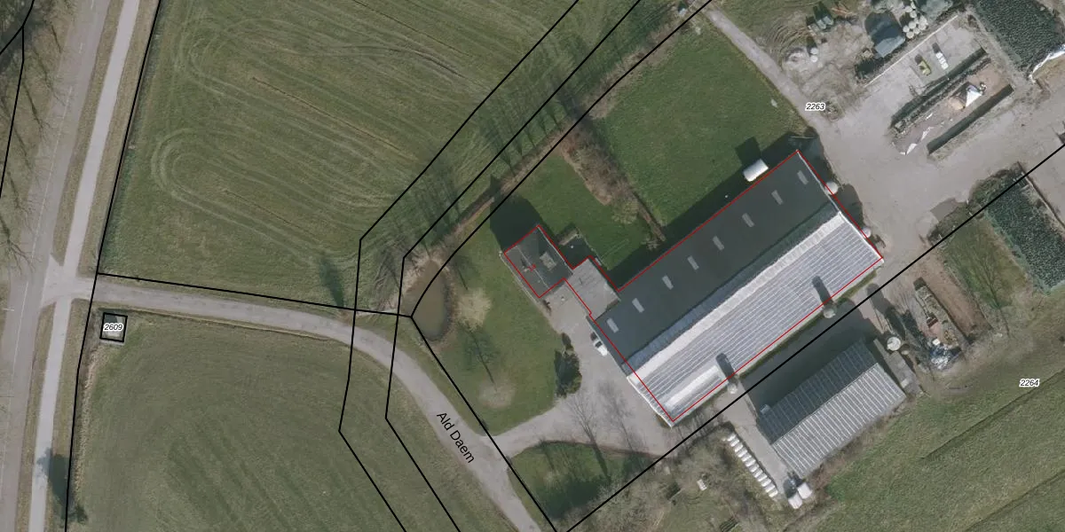 Het perceel waarop Ald Daem 1-a staat heeft een oppervlakte van 1,1 ha. Dit is een zeer groot perceel. De perceeloppervlakte wordt geregistreerd door het Kadaster. Gedetailleerde informatie over de maten van dit perceel kunt u vinden in het rapport Kadastrale kaart met maatvoering van Ald Daem 1-a.
