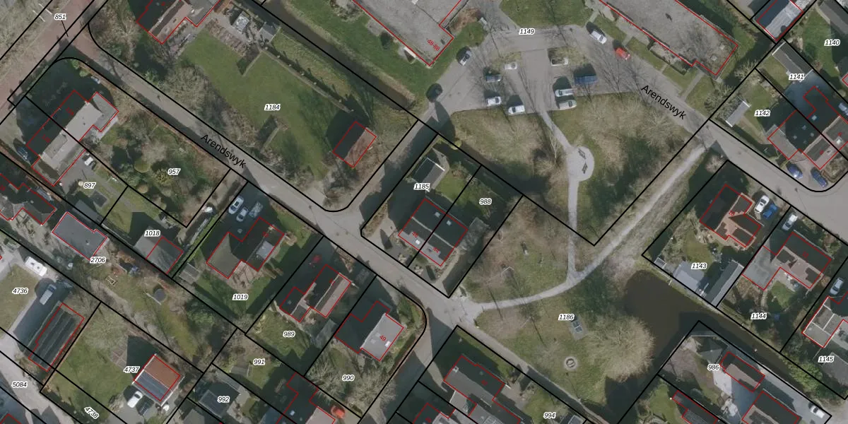Het perceel waarop Arendswyk 46 staat heeft een oppervlakte van 402 m². Dit is een groot perceel. De perceeloppervlakte wordt geregistreerd door het Kadaster. Gedetailleerde informatie over de maten van dit perceel kunt u vinden in het rapport Kadastrale kaart met maatvoering van Arendswyk 46.