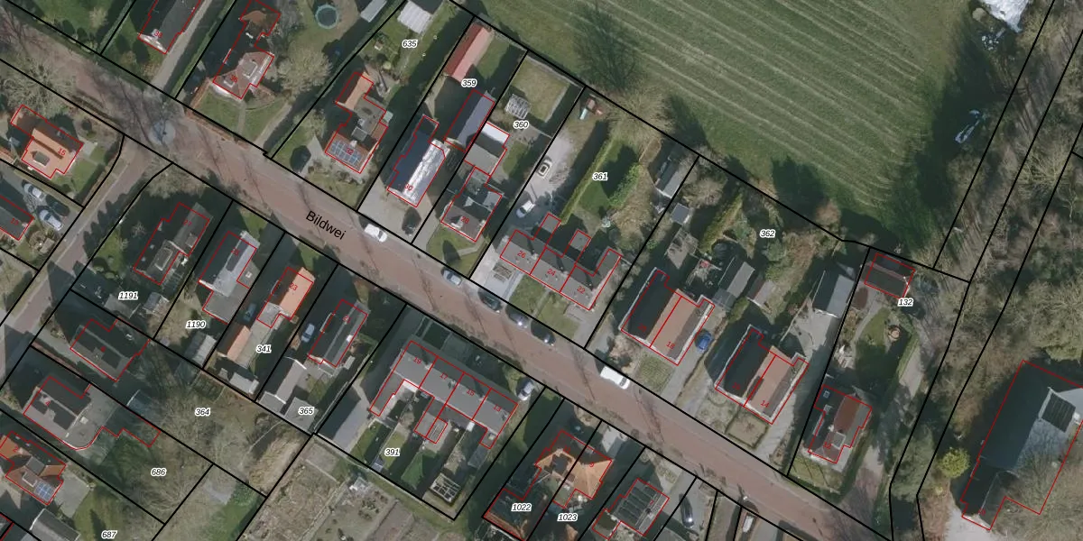 Bildwei 24 is gelegen op kadastraal perceel RTV00D361. Deze kadastrale aanduiding is uniek en wordt gebruikt door het Kadaster om eigendomsrechten en andere zakelijke rechten vast te leggen. Het perceel maakt onderdeel uit van de kadastrale gemeente Rottevalle.