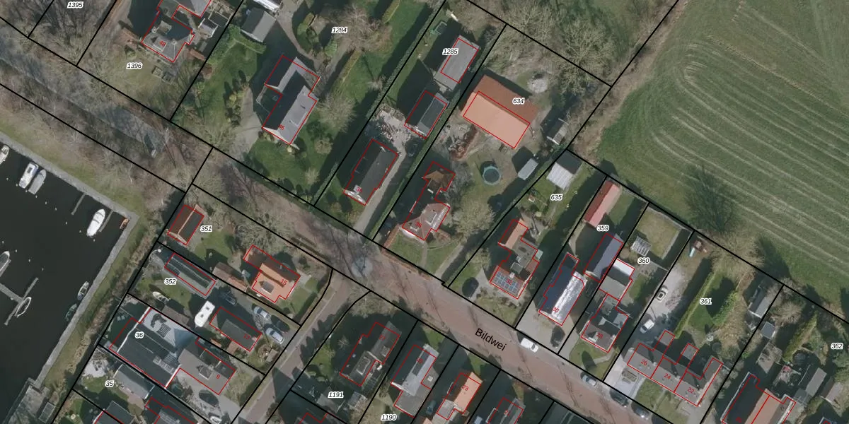 Het perceel waarop Bildwei 36 staat heeft een oppervlakte van 1442 m². Dit is een zeer groot perceel. De perceeloppervlakte wordt geregistreerd door het Kadaster. Gedetailleerde informatie over de maten van dit perceel kunt u vinden in het rapport Kadastrale kaart met maatvoering van Bildwei 36.