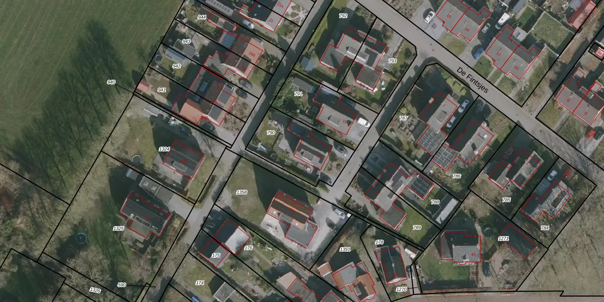 Het perceel waarop De Fintsjes 13 staat heeft een oppervlakte van 515 m². Dit is een groot perceel. De perceeloppervlakte wordt geregistreerd door het Kadaster. Gedetailleerde informatie over de maten van dit perceel kunt u vinden in het rapport Kadastrale kaart met maatvoering van De Fintsjes 13.