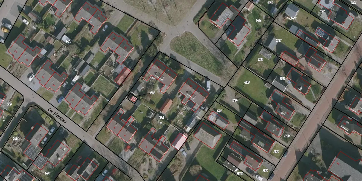 Het perceel waarop De Fintsjes 46 staat heeft een oppervlakte van 2603 m². Dit is een zeer groot perceel. De perceeloppervlakte wordt geregistreerd door het Kadaster. Gedetailleerde informatie over de maten van dit perceel kunt u vinden in het rapport Kadastrale kaart met maatvoering van De Fintsjes 46.